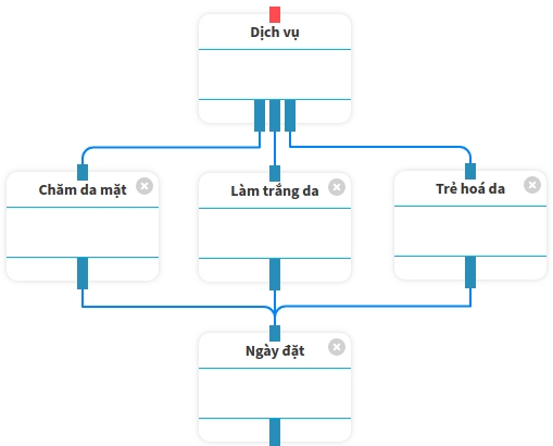 c. Nối các hội thoại lại với nhau để hội thoại xuất hiện theo lựa chọn của Khách.