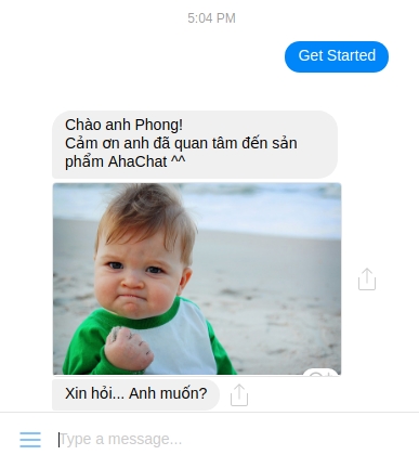 – Trả lời nhanh: Tương tự như nút bấm nhưng được bố trí theo hàng ngang. Đi kèm là tùy chọn Rẽ Nhánh để lựa chọn kết nối với hội thoại tiếp theo. Ví dụ: khi chọn là “Mua hàng” thì sẽ đến hội thoại đưa ra danh sách sản phẩm, còn nếu chọn là “Chưa quan tâm” thì có thể kết thúc cuộc trò chuyện. Đây là loại tin nhắn rất hữu ích để phát triển kịch bản.