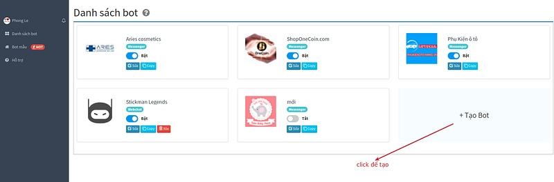 b. Đặt tên hội thoại, thêm tin nhắn của Bot và Khách.