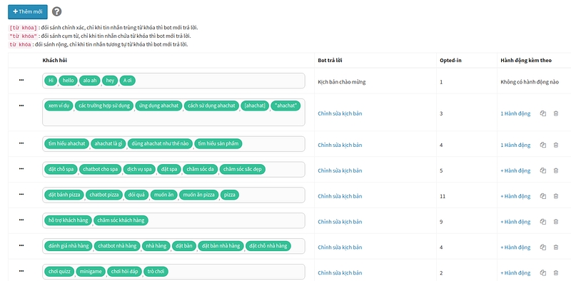 Được chạy khi khách nhắn tin khớp với từ khóa liên kết kịch bản. Thông thường, kịch bản này được dùng để đưa khách hàng vào phễu thu thập thông tin, sau đó liên kết đến các kịch bản từ khóa tiếp theo.