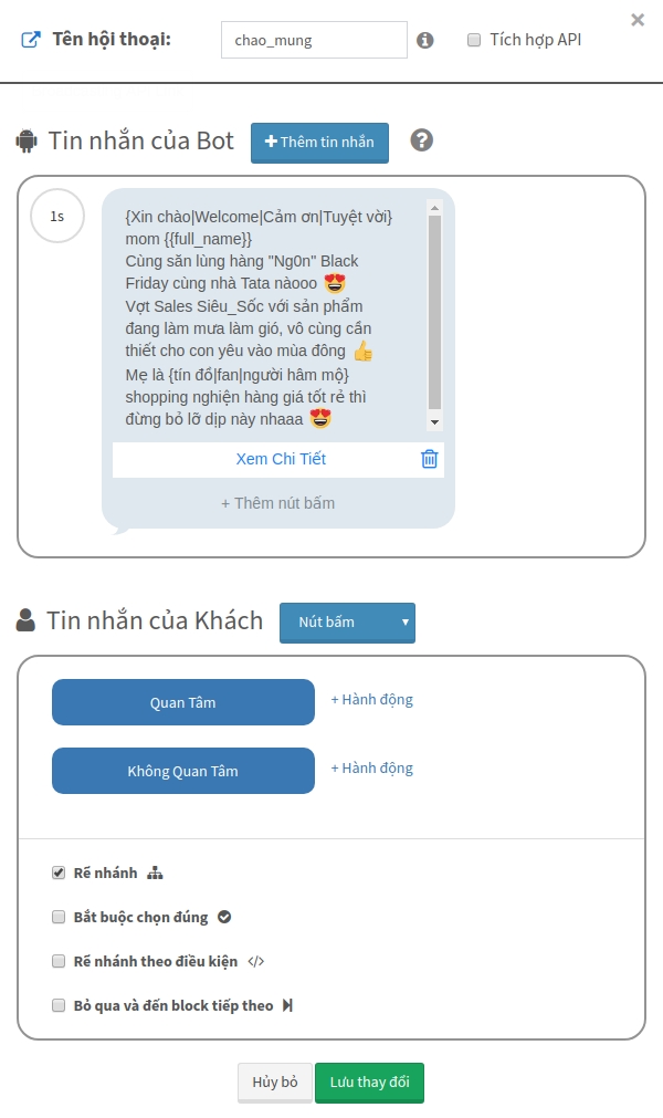 Nội dung tin nhắn cũng phải có một nút tên là "Không Quan Tâm" hoặc "Hủy Nhận Tin" để khách hàng có thể bấm vào đó thay vì chặn page.